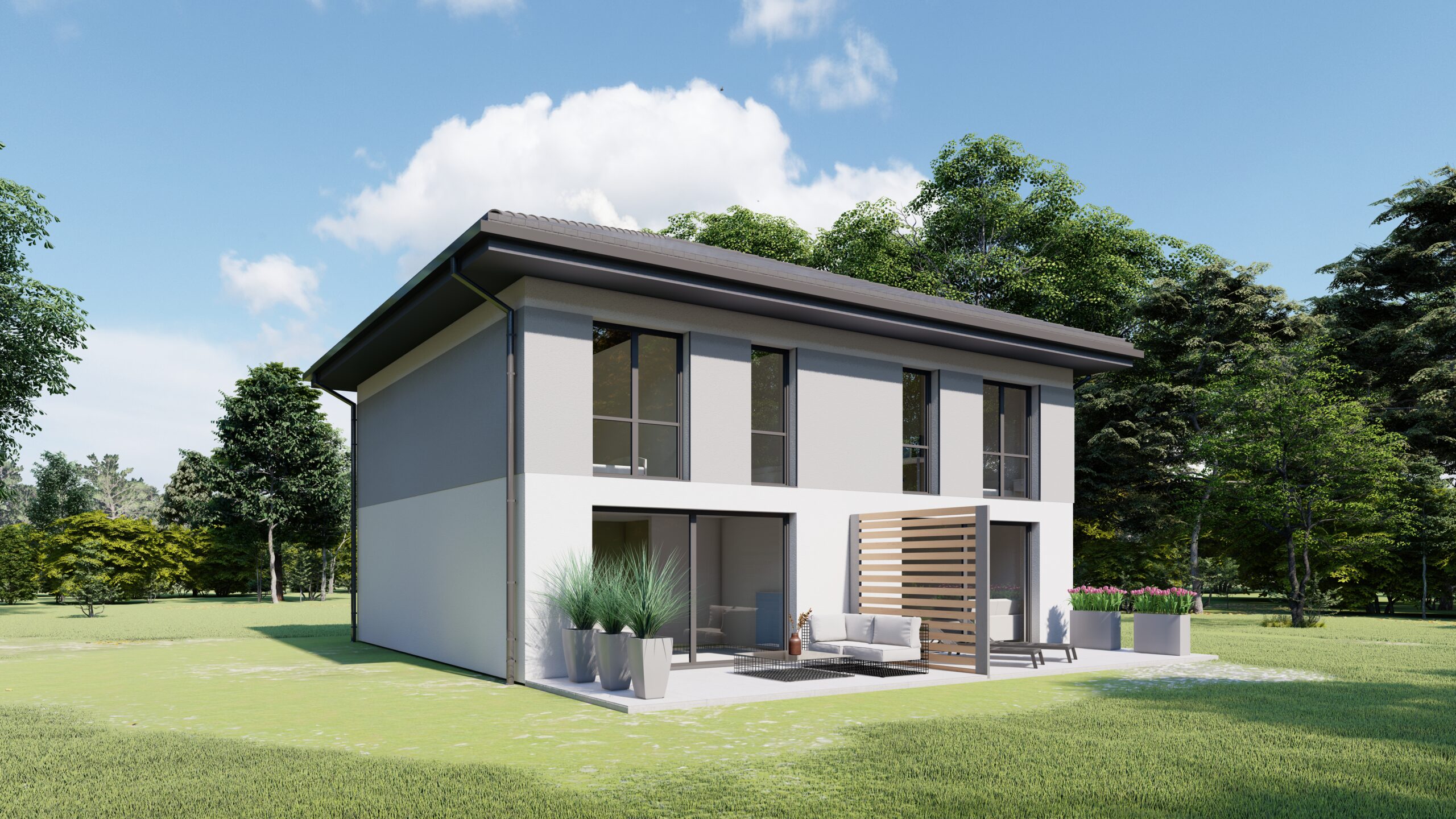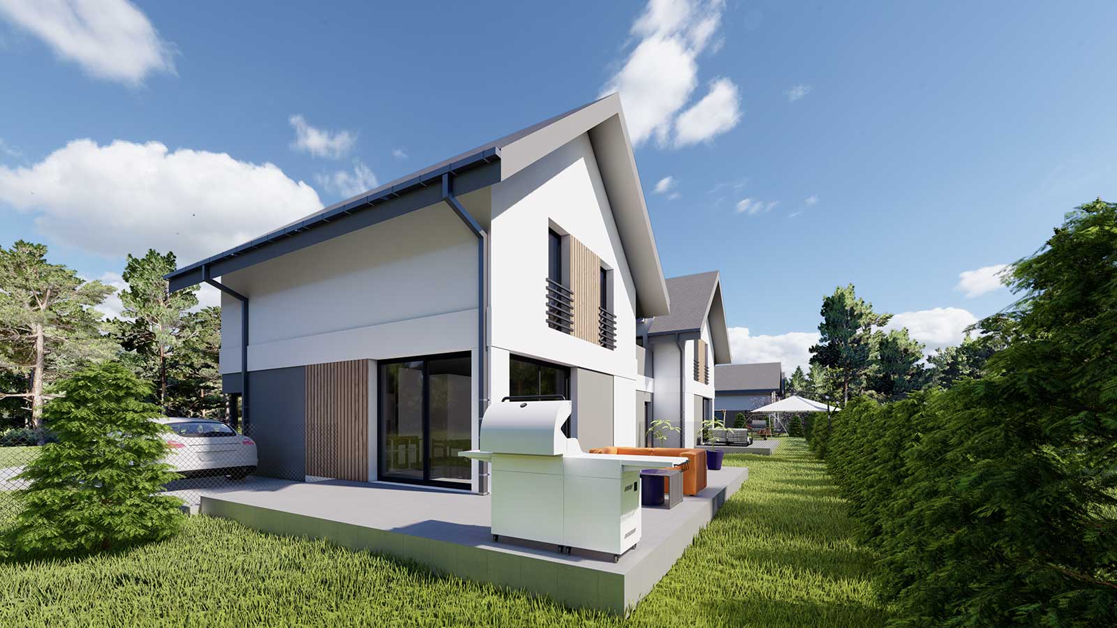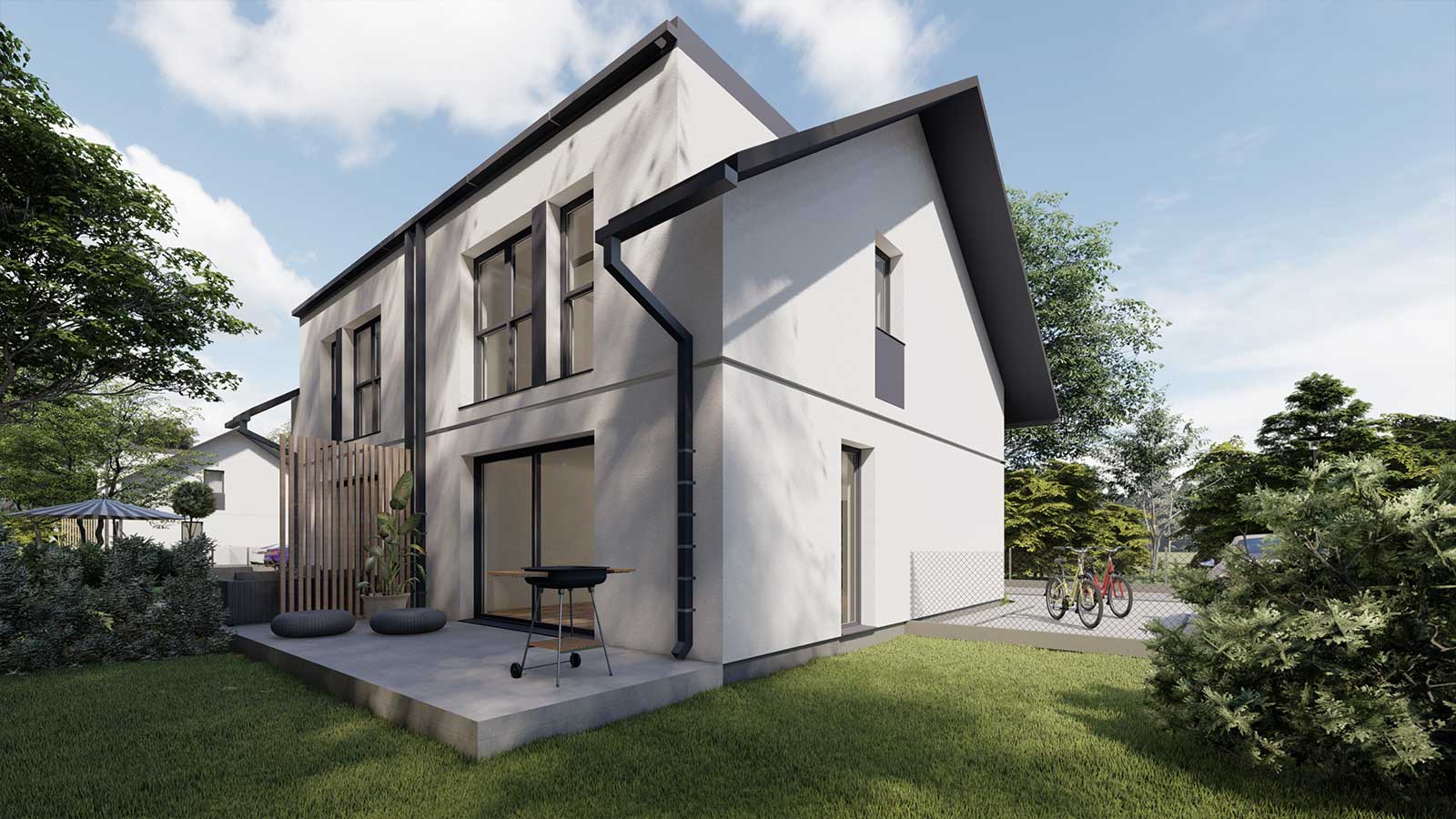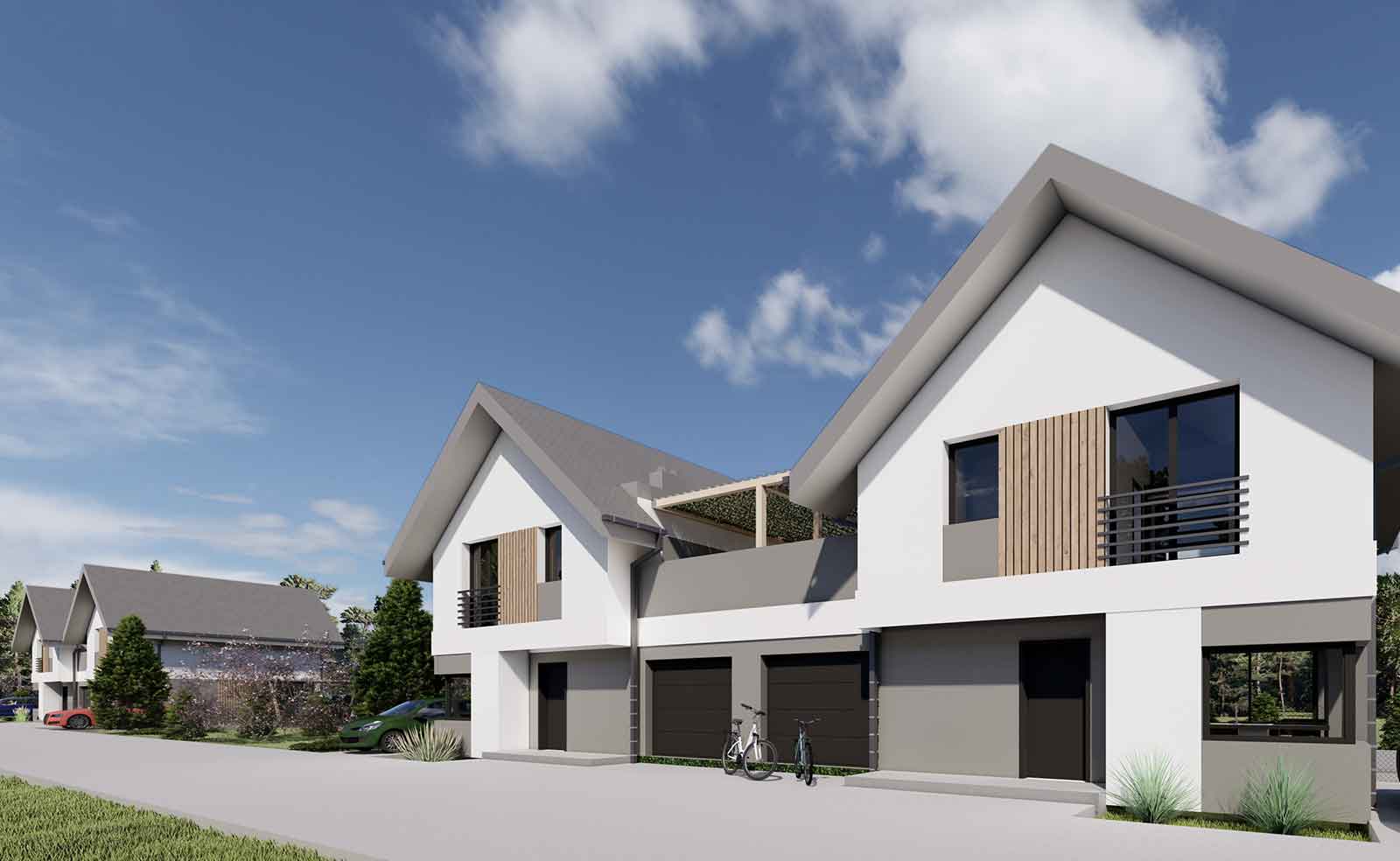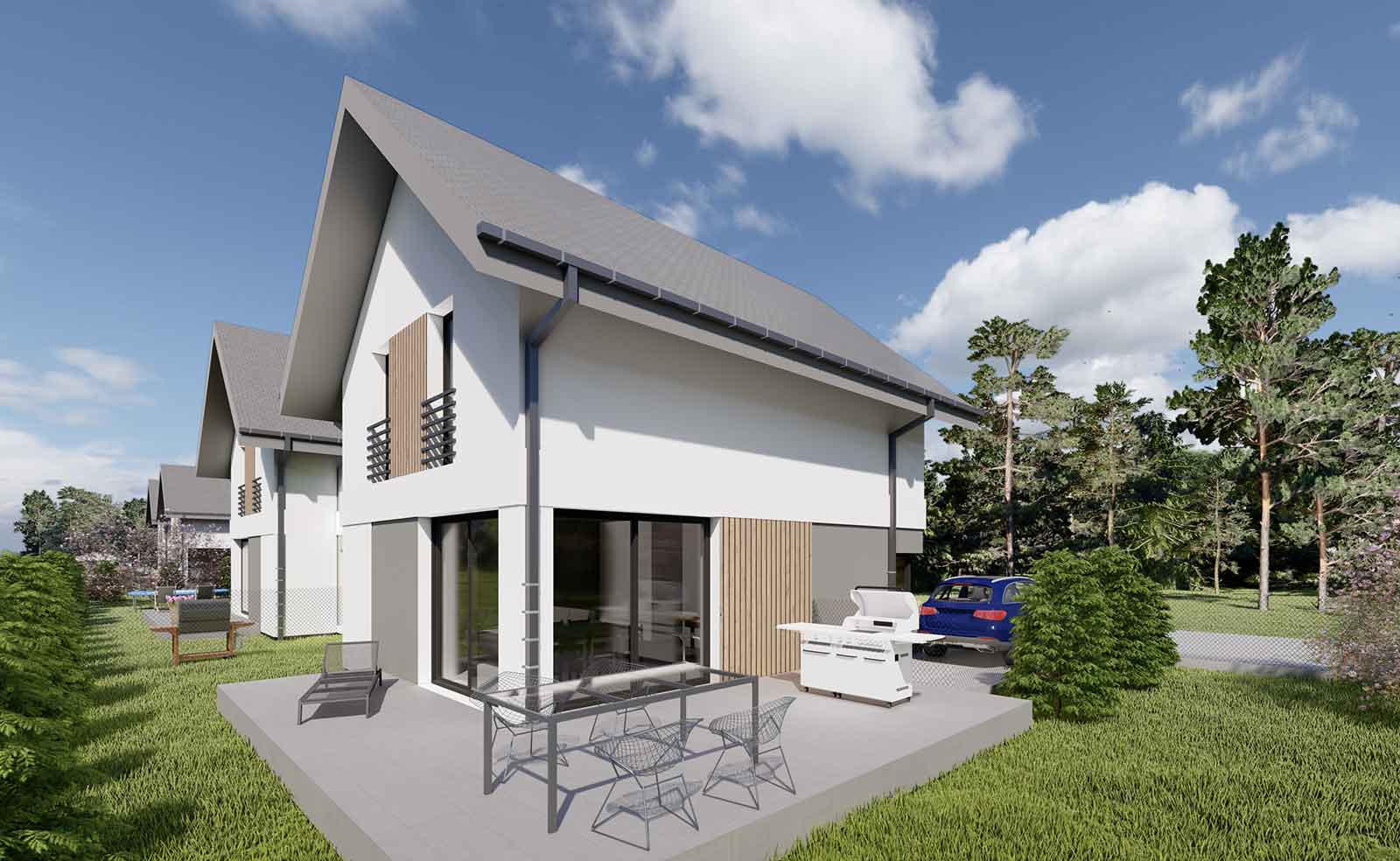 Nasze domy powstają z myślą o harmonii między estetyką, funkcjonalnością i naturą. Starannie zaprojektowana przestrzeń zapewnia prywatność, wygodę oraz poczucie bezpieczeństwa, a jednocześnie tworzy przyjazną, sąsiedzką atmosferę.